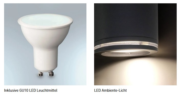 - Inkl. GU-10-LED Leuchtmittel mit warmweißem Licht