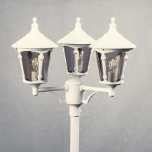 Bereits im letzten und vorletzen Jahrhundert wurden diese Kandelaber als Straßenlaternen eingetzt. Die Anbringung der Leuchtköpfe in ca. 2 Metern Höhe sorgt dafür, daß diese ihr Licht großflächig ausstrahlen.