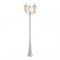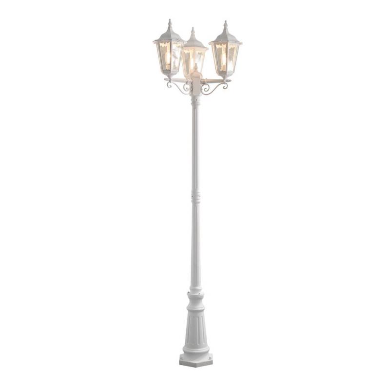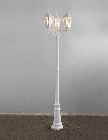Diese prachtvolle Kandelaber aus weiß matt lackiertem Aluminium ist optimal für parkähnliche Gärten und Parkanlagen geeignet. Die Mastleuchte besteht aus drei Lampenköpfen und erinnert an die Zeit Anfang letztes Jahrundert - den Jugendstil. Die klare Verglasung erlaubt einen direkten Blick auf die Leuchtmittel. Wir empfehlen Ihnen daher unsere sparsamen LED-Filament Leuchtmittel einzusetzen. Der klassische Stil der Mastleuchte lässt eine vielfältige Nutzung zu. Ob in der Hofeinfahrt oder am Weg des Grundstückes, diese Kandelaber macht in vielen Umgebungen eine sehr gute Figur.