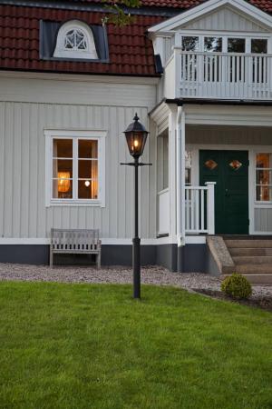 Diese prachtvolle Kandelaber aus schwarz lackiertem Aluminium ist optimal für parkähnliche Gärten, Parkanlagen und imposante Anwesen geeignet. Die Mastleuchte erinnert an die Zeit Anfang letztes Jahrundert - den Jugendstil. Die leicht durchsichtige Rauchglas Verglasung erlaubt einen vagen Blick auf das Leuchtmittel. Wir empfehlen Ihnen daher unsere sparsamen LED-Filament Leuchtmittel einzusetzen. Der klassische Stil der Mastleuchte lässt eine vielfältige Nutzung zu. Ob in der Hofeinfahrt oder am Weg des Grundstückes, diese Kandelaber macht in vielen Umgebungen eine sehr gute Figur.