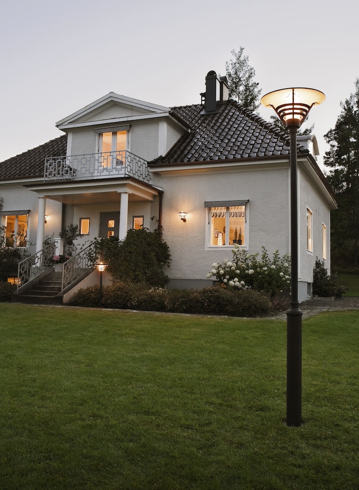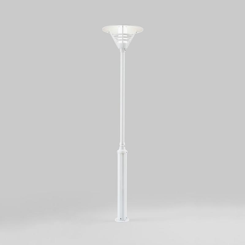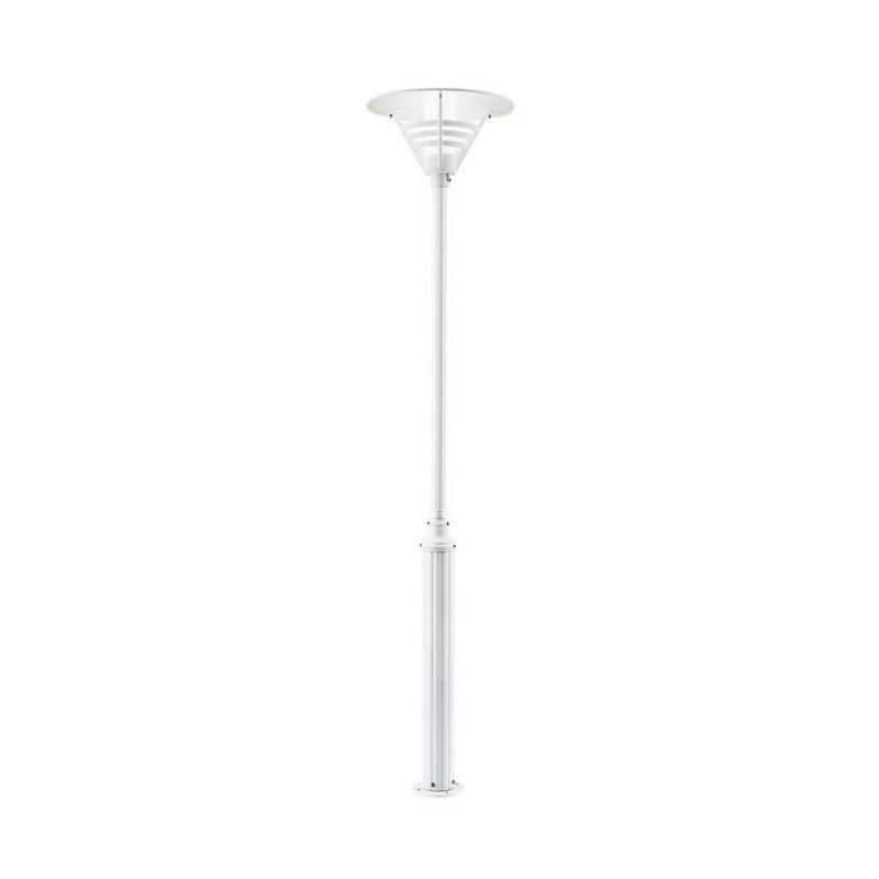 die Einfahrt zu einem Grundstück bzw. Anwesen geeignet. Die Mastleuchte besteht aus einem Lampenkopf mit einem schlichten zeitgenössischen Schirm. Die Verglasung besteht aus klarem Acrylglas und sorgt für eine optimale Ausleuchtung des Grundstückes. Der moderne schlichte Stil der Mastleuchte lässt eine vielfältige Nutzung zu. Ob in der Hofeinfahrt oder am Weg des Grundstückes, diese Kandelaber macht in vielen Umgebungen eine sehr gute Figur.
