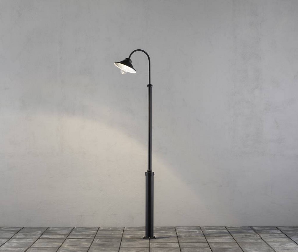 die Einfahrt zu einem Grundstück bzw. Anwesen geeignet. Die Mastleuchte besteht aus einem Lampenkopf mit einem schlichten zeitgenössischen Schirm. Die Verglasung besteht aus klarem Glas und enthält eine High Power LED und sorgt für eine optimale Ausleuchtung des Grundstückes. Der moderne schlichte Stil der Mastleuchte lässt eine vielfältige Nutzung zu. Ob in der Hofeinfahrt oder am Weg des Grundstückes, diese Kandelaber macht in vielen Umgebungen eine sehr gute Figur.