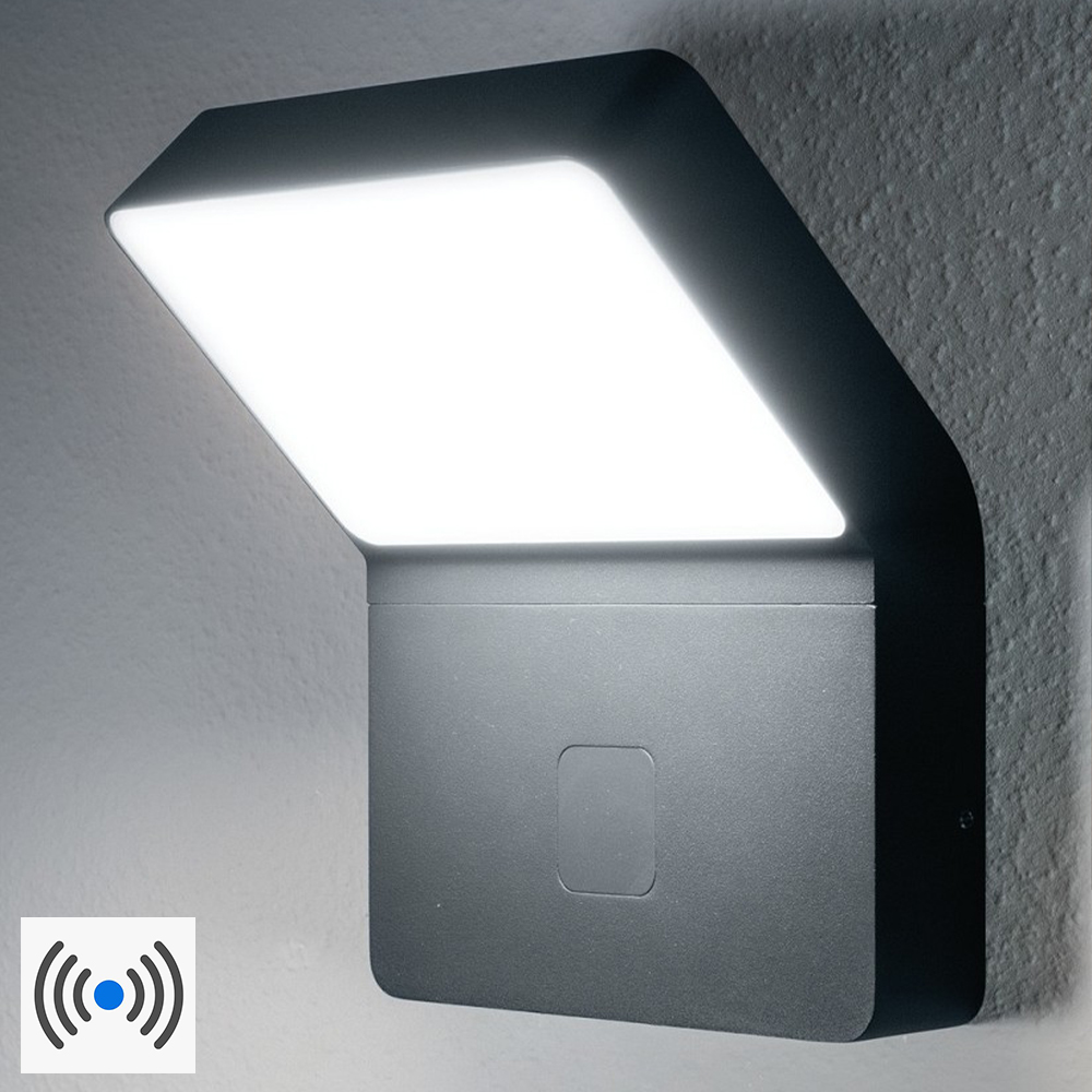 Die WALL WIDE ist eine Außenleuchte, die sehr gut in moderne Balkone und -Terrassen zu integrieren ist. Die LED-Außenwandleuchte hat einen eckige Grundform und besteht aus grauem widerstandsfähigem Polycarbonat, das in der Mitte von einem geschickt integrierten und unauffälligen Bewegungsmelder ergänzt wird. Das macht die Lampe zu einer modernen Erscheinung. Das abgestrahlte Licht ist warmweiß und blendfrei und wird als besonders angenehm empfunden. Daher ist die Leuchte sehr gut zur allgemeinen Outdoorbeleuchtung geeignet und passt gleichermaßen gut auch an den Eingangsbereich zur Haustür.