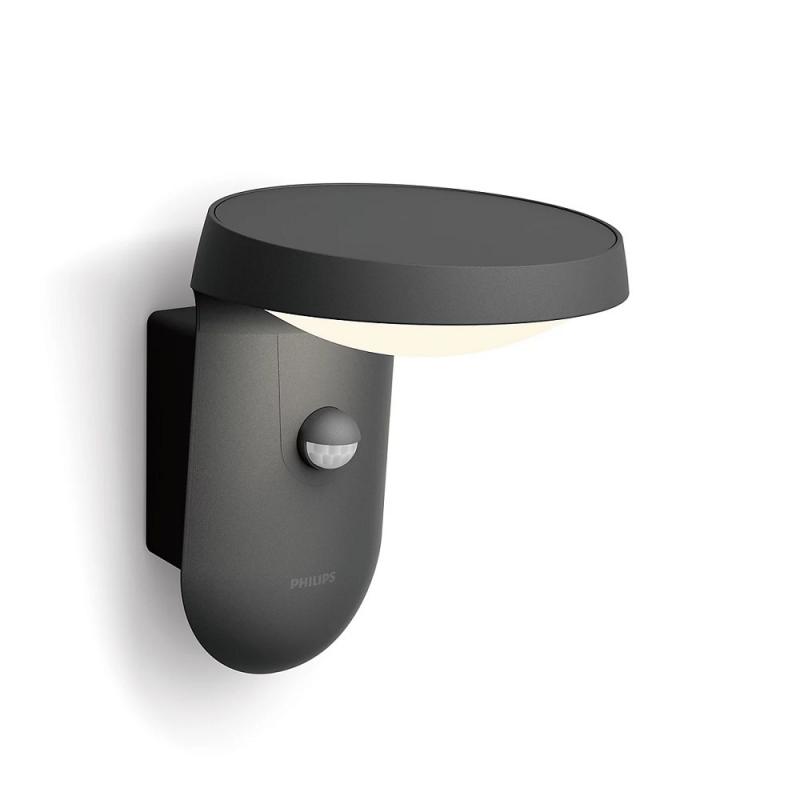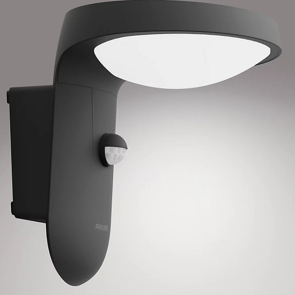 Die Philips Tyla LED-Wandleuchte für den Außenbereich in Anthrazit umrahmt das gemütliche Licht in einem widerstandsfähigen Gehäuse aus Aluminium-Druckguss. Im Ruhezustand erzeugt sie mit kaltweißem Licht ein ansprechendes Ambiente. Bei Anwesenheit von Personen hellt sich das Licht automatisch auf.