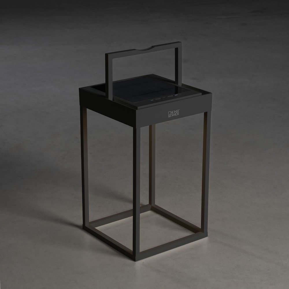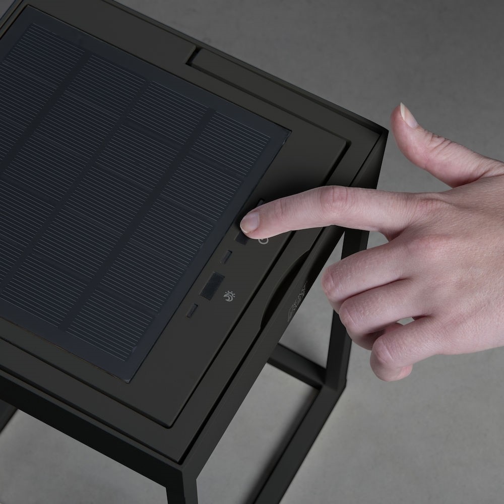 Die PORTOFINO wird durch das geschickt platzierte und kaum erkennbare Solarpanel auf dem Lampenschirm oben aufgeladen. Der An- und Ausschalter ist perfperkt positioniert.
