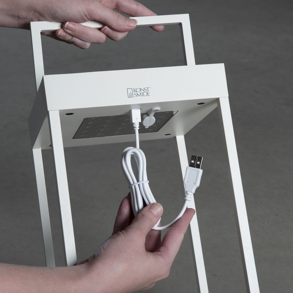 Die PORTOFINO wird durch das geschickt platzierte und kaum erkennbare Solarpanel auf dem Lampenschirm oben aufgeladen. Der An- und Ausschalter ist perfperkt positioniert.