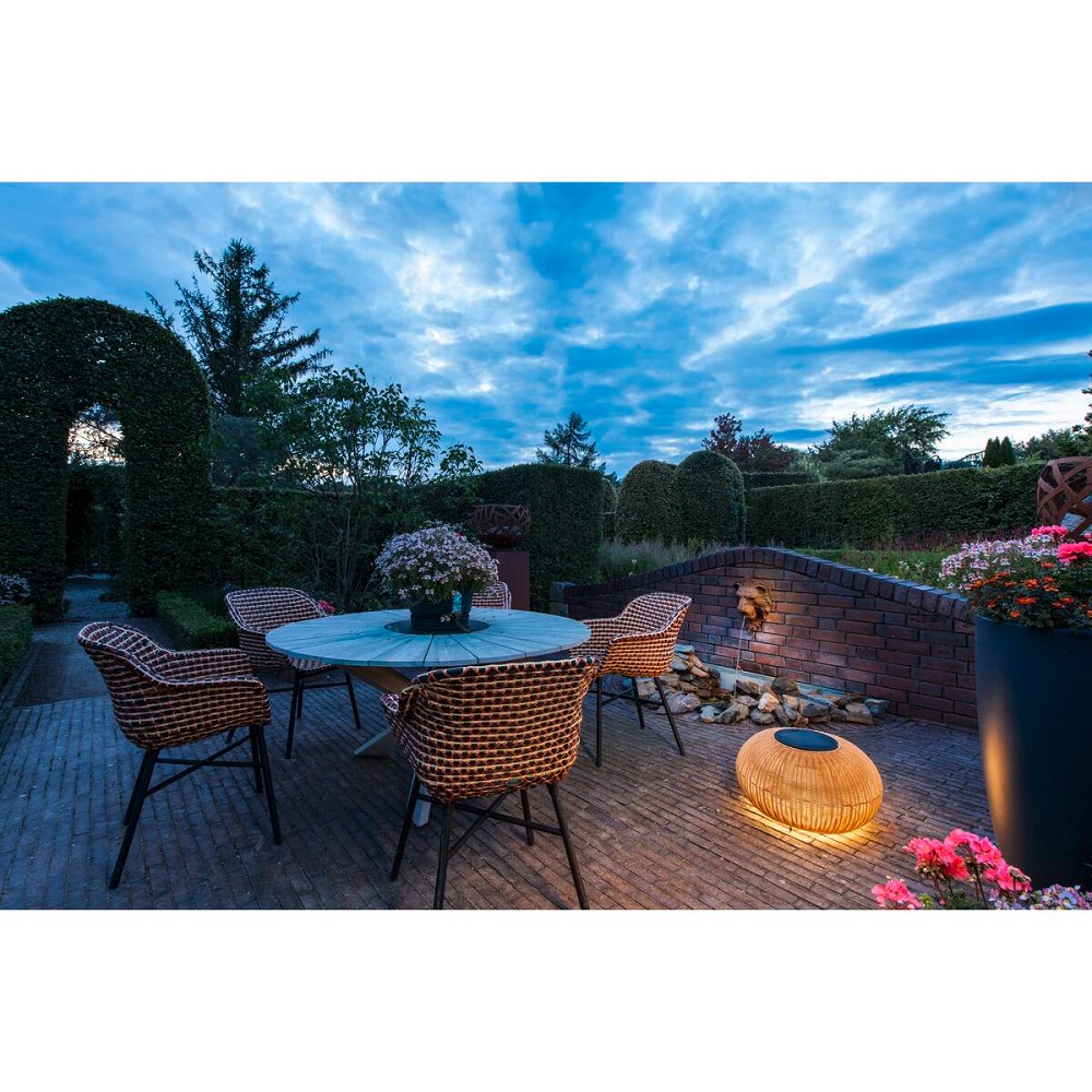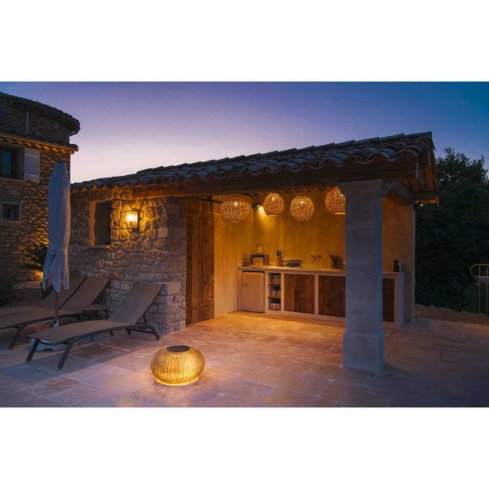 Die dekorativen ADEGAN Solarleuchten bringen entspanntes Licht in Gärten, Terrassen und Outdoor-Lounges. Mit ihrem minimalistischen Design und dem in schwarzen oder braunen PE-Rattan eingefassten Leuchtkörper sind sie ein markanter Blickfang bei Tag und Nacht. Dank Schutzart IP65 ist ADEGAN bestens für den ganzjährigen Außeneinsatz geeignet. Das integrierte 2.200 K warmweiße LED-Modul liefert bis zu 500 lm und lässt sich über drei Helligkeitsstufen (100 % / 50 % / 25 %) regulieren. Der integrierte 3,7 V / 4400 mAh Akku ermöglicht flexiblen Einsatz ohne festen Stromanschluss – ideal für mobile, atmosphärische Lichtlösungen im Außenbereich. Die Ladung erfolgt kabellos über ein Solarpanel oder alternativ per USB-C-Ladekabel.