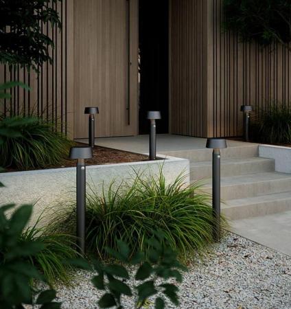 Die solarbetriebene Nama-Serie bietet ein klassisches, rundes Design mit einem schönen 360-Grad-Lichtaustritt. Sie eignet sich perfekt entlang der Auffahrt oder dem Eingangsweg, wo Sie eine gute Beleuchtung benötigen. Nama wird tagsüber durch Sonnenlicht aufgeladen und schaltet sich über einen Bewegungssensor automatisch ein. Einfache Montage mit dem mitgelieferten Erdspieß. Die Leuchte ist grundsätzlich nicht für aggressive Umgebungen mit rauen Wetterbedingungen zu empfehlen.