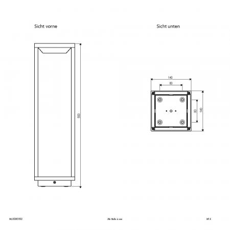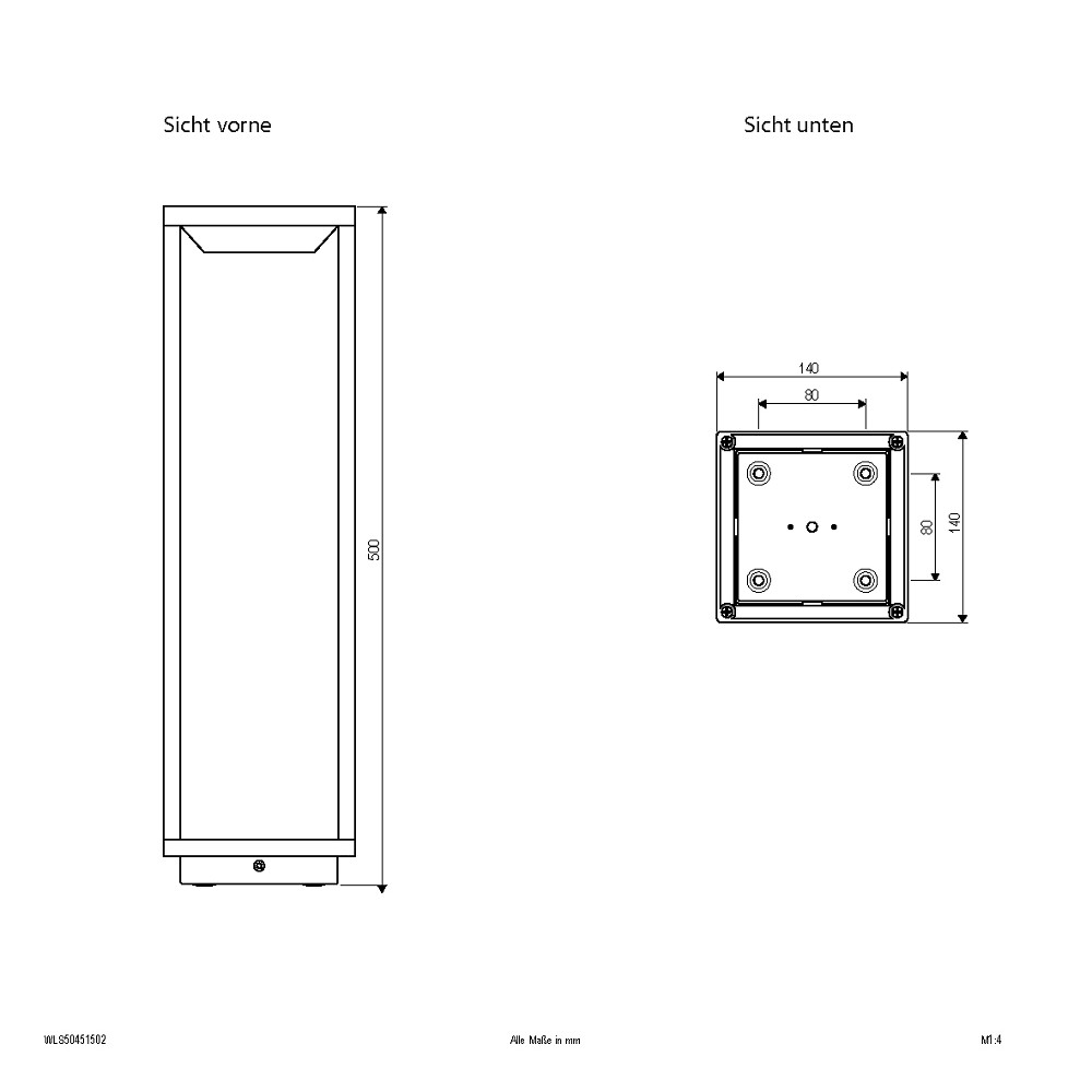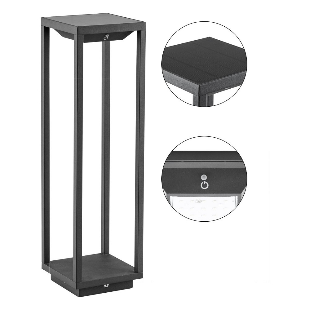 Solar Wegeleuchte gefertigt aus Aluminium im Druckgussverfahren und pulverbeschichtet. Die Leuchte ist perfekt zur Beleuchtung von Gehwegen, als Randbeleuchtung für Terrassen oder Beete und vieles mehr geeignet. Da kein Stromanschluss nötig ist, kann diese bei Bedarf jederzeit einfach versetzt werden. Je nach Standort benötigt die Leuchte mindestens 6-8 Stunden bis der Akku voll aufgeladen ist. Mit voll geladenem Akku ist eine Betriebszeit von max. 12 Stunden möglich. Zusätzlich ist die Leuchte mit einem Dämmerungssensor versehen, so dass sich die Leuchte erst einschaltet, sobald 20 Lux unterschritten werden. Für einen sicheren Stand ist im Lieferumfang ein Erdspieß aus Kunststoff enthalten. Batterietyp: 18650 3,7V 2200mAh.