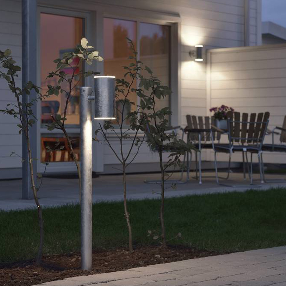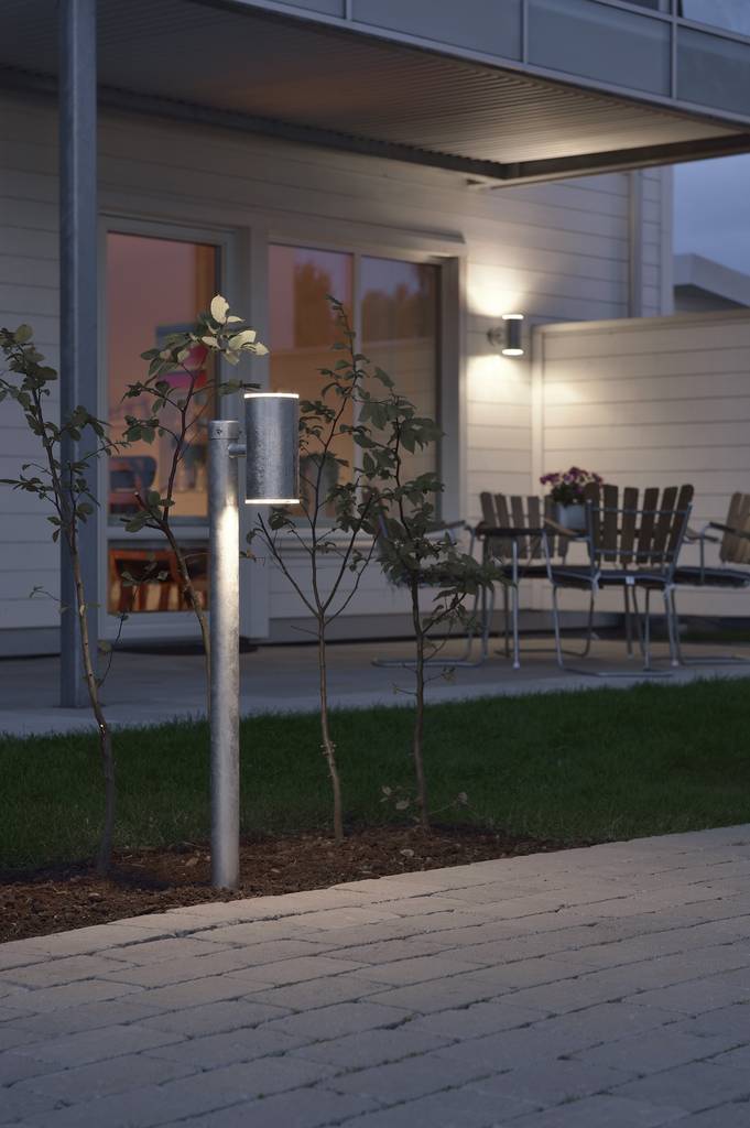 Die einfach gefertigte Outdoor Leuchte begeistert durch ihre schlanke Formgebung. Die Leuchte besteht aus galvanisierter Stahl und Polycarbonat Glas und ist dadurch robust. Zudem sorgt sie bei Dunkelheit für optimale Lichtverhältnisse auf Ihrem Grundstück. Die effektvolle Sockelleuchte ist eine Bereicherung für jeden Außenbereich.