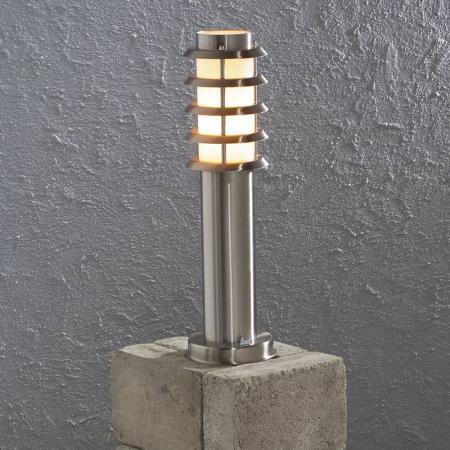 Die Leuchte Trento ist aus Edelstahl gefertigt und verfügt über ein opales Acrylglas mit Schutzart IP44 - also staub- und spritzwassergeschützt -, so dass sie auch im Außenbereich eingesetzt werden kann, ohne dass widrige Witterungsbedingungen ihr etwas anhaben können.