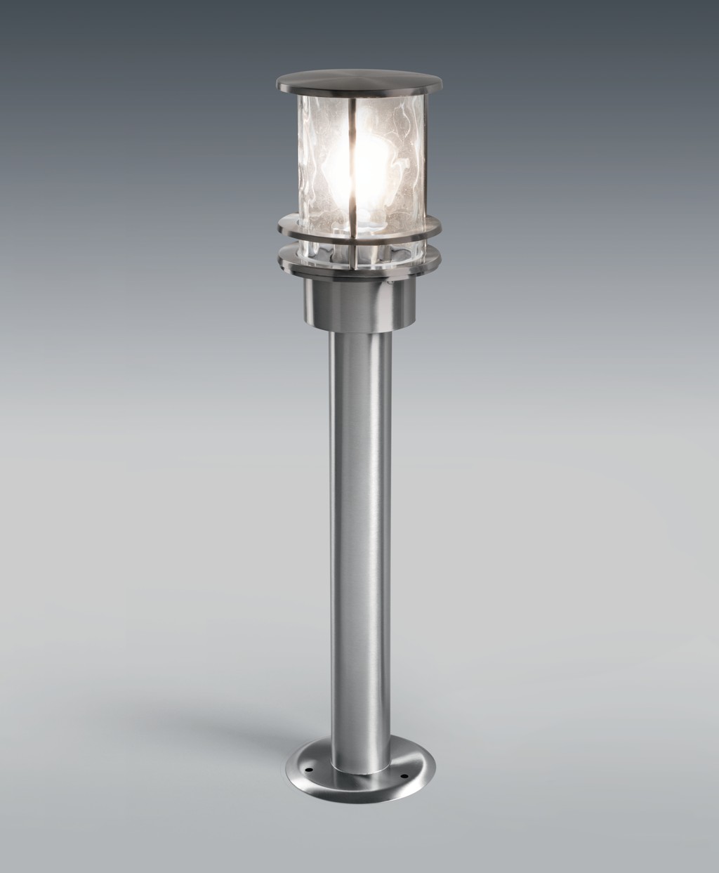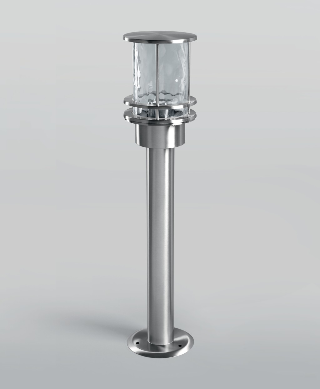 Die Leuchte ist eine einzigartige und elegante Leuchte, die Ihren Außenbereich beleuchten wird. Das Gehäuse aus rostfreiem Stahl und der klare Glasdiffusor werden durch ein gehämmertes Finish ergänzt, wodurch ein beeindruckender Look entsteht, der Ihrem Außenbereich sofort Stil verleiht.