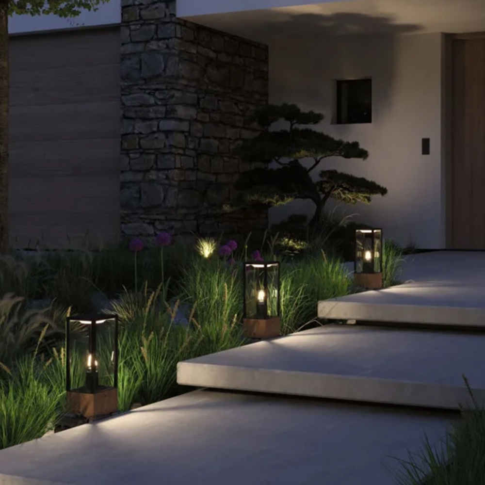 Mit dem stilvollen Mix aus Schwarz und Holz ist das Lichtobjekt Timba mit einer Höhe von 40 cm ein echter Blickfang für den Außenbereich. Es strahlt sowohl Eleganz als auch Modernität aus und bringt stimmungsvolles Licht als Gehwegbeleuchtung, im Garten oder auf der Terrasse. Dank Spritzwasserschutz ist die Leuchte ideal für die Installation im Außenbereich geeignet.