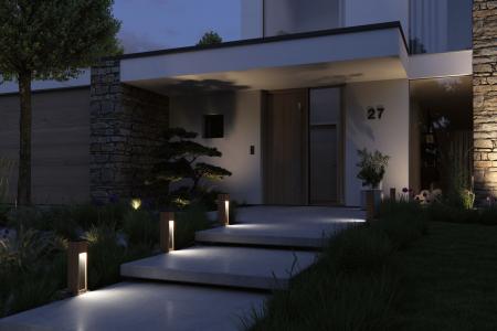 Die 40 cm hohe Pollerleuchte Trabia setzt mit ihrer modernen Holzoptik fantastische Lichteffekte. Sie vereint die Aspekte Funktionalität und Ästhetik miteinander und sorgt für ein angenehmes, gleichmäßiges Licht an Gehwegen, im Garten oder auf der Terrasse. Dank Spritzwasserschutz kann die Lampe im Außenbereich installiert werden.