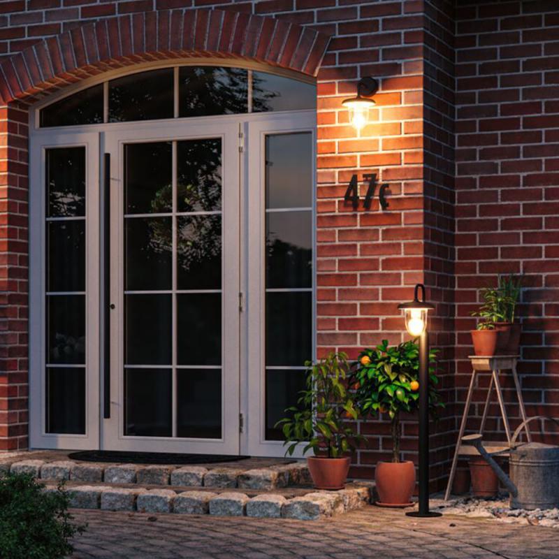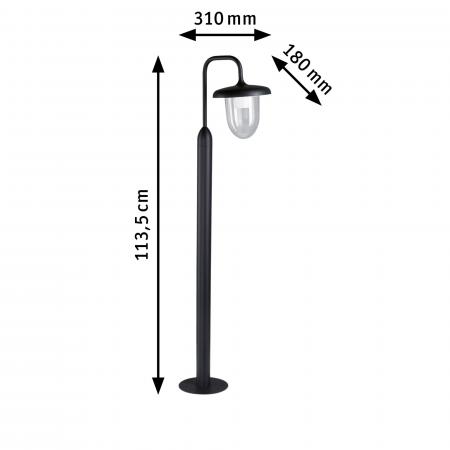 Die Pollerleuchte Vintario besticht durch ihr klassisches Design und einem ländlichen Stil. Das anthrazitfarbene Gerüst und der klare Glasschirm sorgen für eine nostalgische Optik. Als Leuchtmittel eignen sich hier besonders die Vollglas-Filamente im Vintage-Look. In Kombination mit einer Zigbee-Lampe ist auch die Steuerung per Smartphone oder Tablet möglich. Mit einem IP-Schutz 44 ist die Leuchte spritzwassergeschützt.