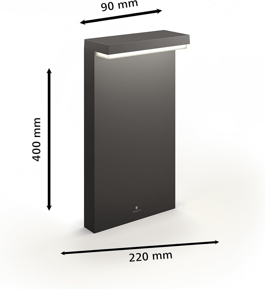 Philips Bustan Ultra Efficient Sockel- und Wegeleuchte – Anthrazit, 3,8 W, 2700 K