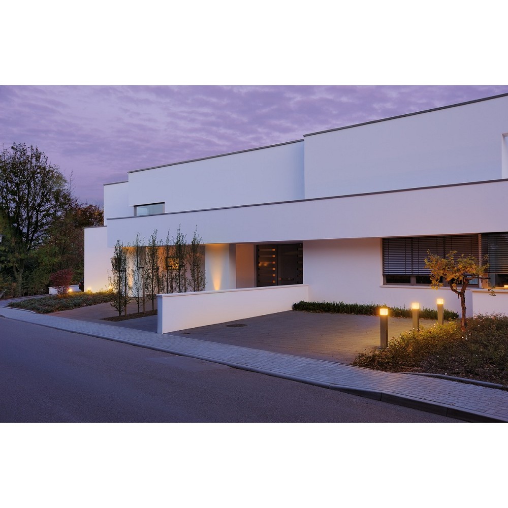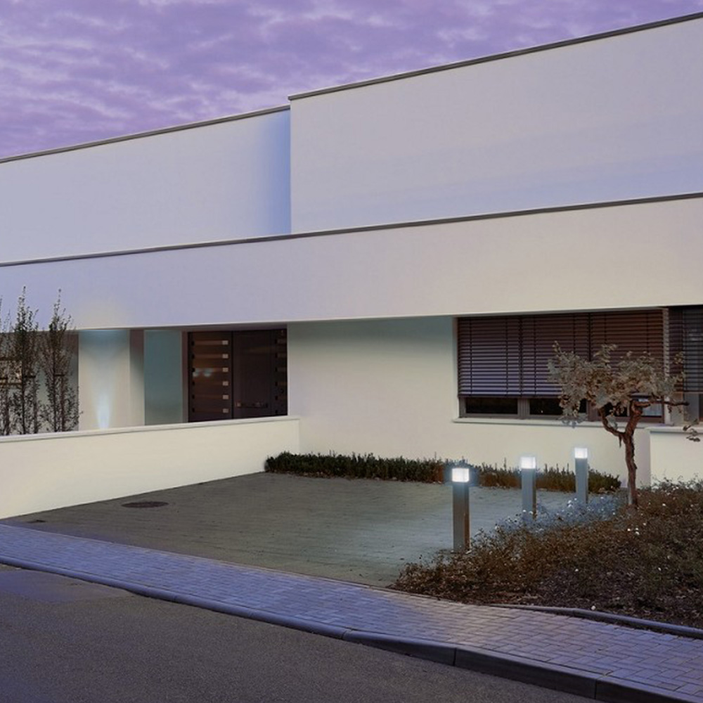 Die in drei Höhen verfügbare Standleuchte der SQUARE Serie besteht aus gebürsteten Aluminiumprofil und einem opalen Acryl Quader welcher das Leuchtmittel beinhaltet. Durch die Schutzart IP44 ist sie für den Außenbereich geeignet. Der elektrische Anschluss erfolgt an 230V Netzspannung. Die SQUARE Serie beinhaltet des Weiteren Decken- und Wandleuchten und ist somit universell einsetzbar. Zur einfachen Montage sind optional Erdspieß und Betonankerset erhältlich.
