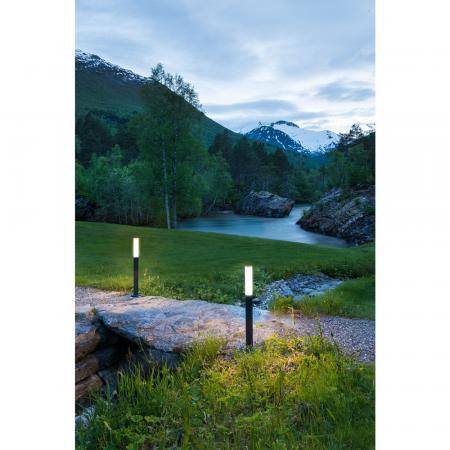90cm hohe & schlanke Wegeleuchte in anthrazit mit warmweißer LED in Form einer Fackel