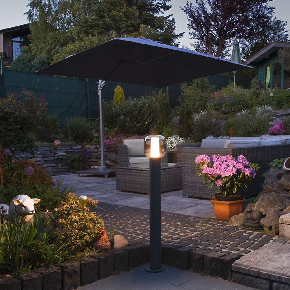 100cm hohe LED Wegeleuchte mit Glaskugel anthrazit mit umschaltbarer Farbtemperatur