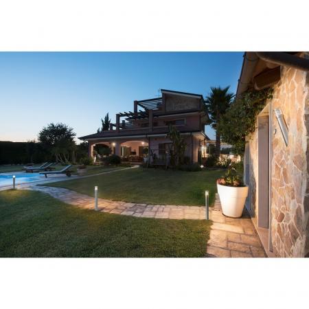 Bei der aus Edelstahl gefertigten Standleuchte TRUST 30 wird die opale PC Leuchtfläche von einer Edelstahlkappe abgeschlossen. Durch die Schutzart IP55 ist sie für den Außenbereich geeignet. Optional ist ein Erdspieß sowie eine Verbindungsbox zum sicheren, elektrischem Anschluss im runden Leuchtenschaft verfügbar. Der elektrische Anschluss der in zwei Größen verfügbaren Leuchte erfolgt an 230V Netzspannung. Als weiteres Zubehör steht ein Edelstahlraster zur Änderung der Lichtwirkung zur Verfügung. Die TRUST Serie beinhaltet des Weiteren Wandleuchten und ist somit universell einsetzbar. Diese Leuchte ist mit einer leistungsstarken 8,6W LED ausgestattet.