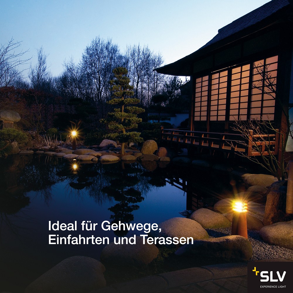 Durch Schutzart IP55 ist Sie für den Außenbereich geeignet. Optional ist ein Erdspieß sowie eine Verbindungsbox zum sicheren, elektrischem Anschluss im runden Leuchtenschaft verfügbar. Der elektrische Anschluss der zwei verfügbaren Versionen erfolgt jeweils an 230V Netzspannung.