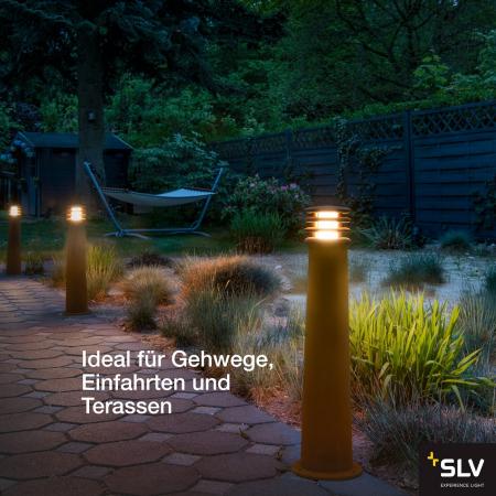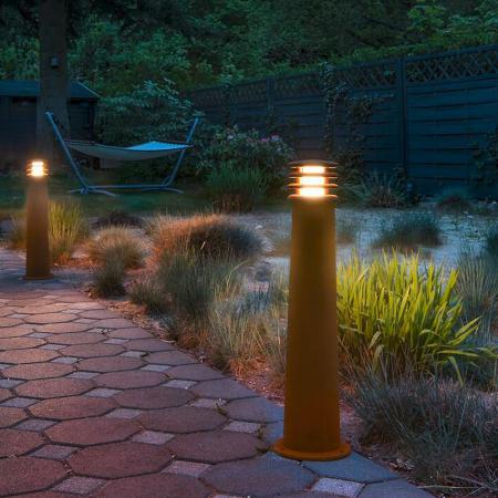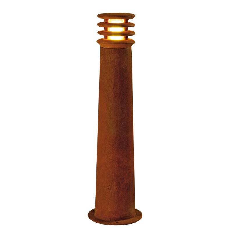 Runde RUSTY 70cm hohe Wege- und Gartenleuchte aus Eisen mit Rostpatina IP55