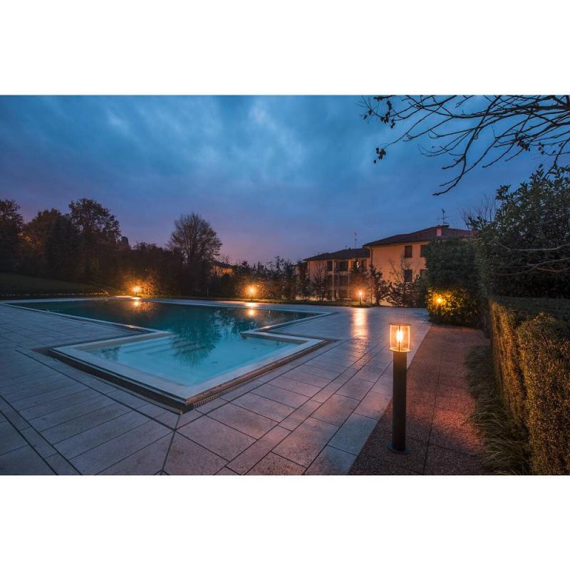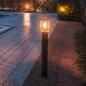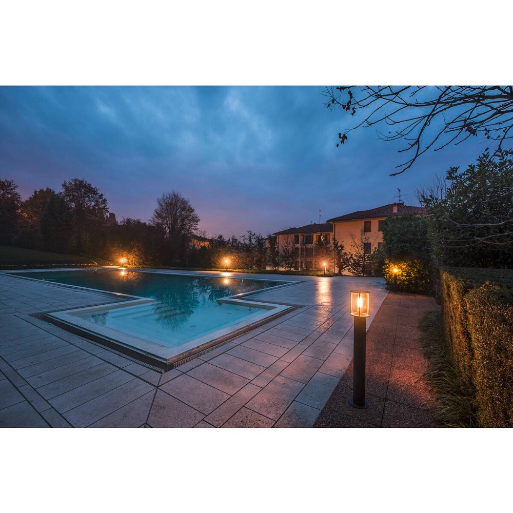 Die Wegeleuchte PHOTONIA besteht aus Aluminium und klarem Glas, welches das Leuchtmittel komplett umschließt. Dank der Position der verbauten Fassungen, erzeugt die montierte Leuchte einen homogenen Lichtkegel und dient ideal als Wegeleuchte. Das Laternendesign bietet eine Lichtverteilung von 360°, um Gehwege und andere offene Flächen im Außenbereich mit ausreichend Licht zu versorgen.