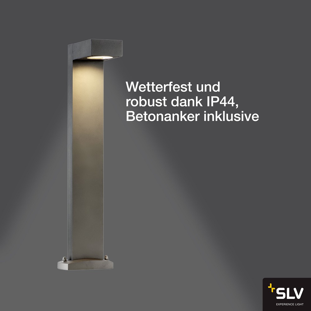 Quadratische Stehleuchte der QUADRASYL Serie gefertigt aus lackierten Aluminium. Durch die Schutzart IP44 für den Außenbereich geeignet. Der elektrische Anschluss der in zwei Farbversionen verfügbaren Leuchte erfolgt an 230V Netzspannung. Optional ist eine Verbindungsbox zum sicheren, elektrischem Anschluss im Leuchtenschaft verfügbar. Zur einfachen Montage ist im Lieferumfang ein Betonanker-Set enthalten. Die QUADRASYL Serie beinhaltet des Weiteren Wandleuchten und ist somit universell einsetzbar.