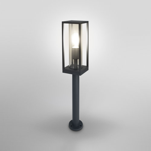 Diese Pollerleuchte hat ein dunkelgraues Aluminiumgestell und ist mit einer E27-Fasung ausgestattet. Es wird ergänzt von klaren Glasscheiben, die den vollen Durchblick gewähren. Dadurch geht nichts von der Leuchtkraft der optional bei uns erhältlichen E27-LED verloren und man kann mit der Wegeleuchte eine tolle Helligkeit rund um das Haus und im Garten erzielen. Die Laternenform kennt man bei Außenleuchten schon lange, da sie ihren Ursprung schon in der vorelektrischen Zeit hat, aber meist wirken die entsprechenden Leuchten klassisch.