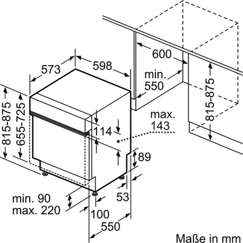 Nischenmaße für Installation mm (HxBxT): ... 815-875 x 600 x 550