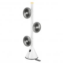Ein Turmventilator ist dagegen deutlich kompakter gebaut. Er ist zylindrisch und seine Bedienelemente sind sich auf der Oberseite angebracht. Im Gegensatz zum Standventilator besitzt er keine großen Rotorblätter, sondern viele kleine Lamellen, die sich alle wie eine Trommel im Towergehäuse drehen.