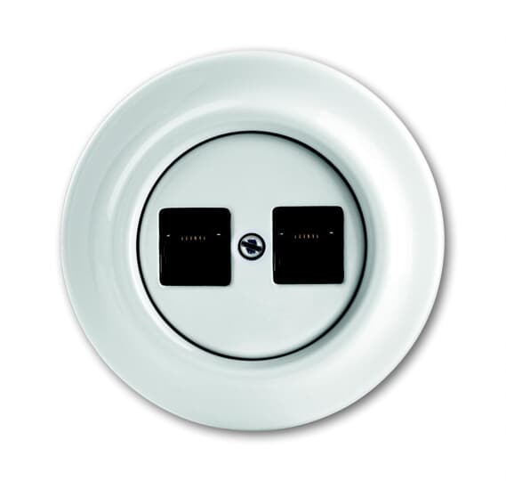 Für 2 Modular-Jack-Einsätze. mit Abdeckung Passend zu Art.-Nr. 0210, 0211 und 0219-101. Material: Porzellan Nur für Schraubbefestigung. Komplettgerät: Einsatz, Zentralscheibe und Rahmen Modular Jack im LIeferumfang nicht enthalten