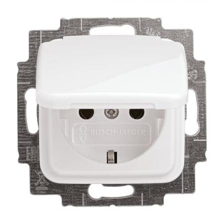 Mit Steckanschluss. 2-polig (2 P + E) Klappdeckel arretiert in geöffnetem Zustand.