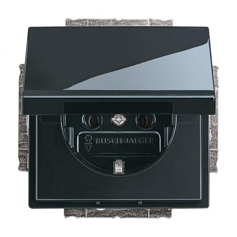 Mit Steckanschluss. 2-polig (2 P + E) Klappdeckel arretiert in geöffnetem Zustand.