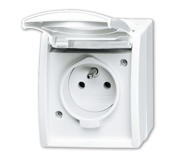 Mit Steckanschluss. Mit Klappdeckel. Geeignet für die Länder: Polen, Tschechische Republik. 2 P + E, Beschriftbar mit Beschriftungsträger 1763-53. Passende Beschriftungssoftware unter www.BUSCH-JAEGER-Beschriftungstool.de. Anschlussklemmen nach IEC 60 884-1 als Verbindungsklemmen geeignet.