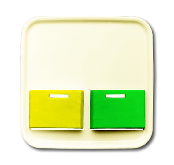 Als Abdeckung für Abstelltaster. Mit gelber und grüner Abstelltaste. Als Alternative zu Ackermann-Abdeckungen 88910 A3, 88882 B3 und 88882 B3N.