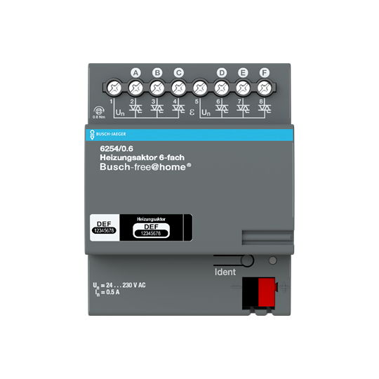 Zur Steuerung von thermoelektrischen Stellantrieben in Heiz-/Kühlsystemen. Pro Ausgang können bis zu 3 Stellantriebe 6164/10-102 oder 1 Stellantrieb 6164/11-102 angeschlossen werden. Die Ausgänge sind kurzschluss- und überlastsicher. Der Busanschluss erfolgt über die beiliegende Busklemme. Programmierung nur bei angelegter Busspannung über das Web-Interface des System Access Points. Weitere Informationen zur Inbetriebnahme und Bedienung finden Sie im Systemhandbuch und der Online Bedienungsanleitung im aktuellen Online-Katalog.
