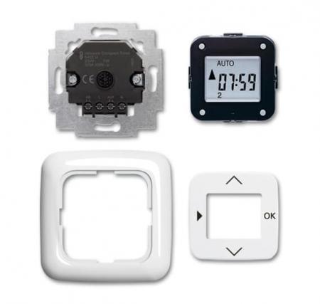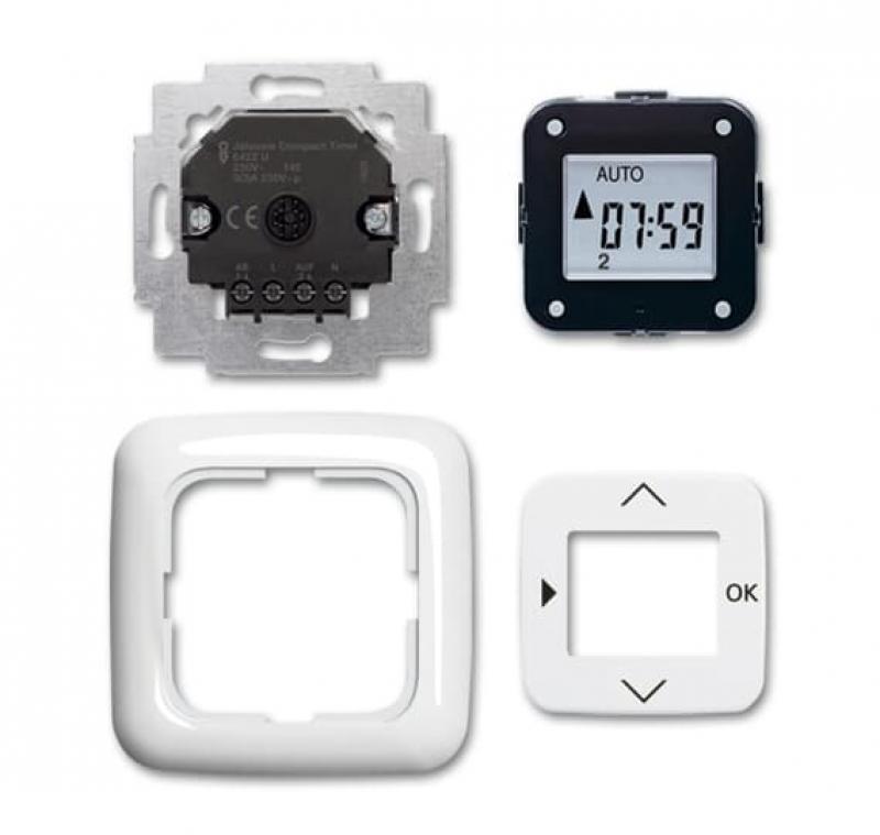 Geeignet für Rollladen- und Jalousieantriebe mit mechanischer oder elektronischer Endlagenabschaltung. Ohne Nebenstelleneingang. Bestehend aus Jalousie-Compact-Timer 6422 U. Bestehend aus Reflex SI-Zentralscheibe für Timer-Bedienelement 6435-214. Bestehend aus Reflex SI-Abdeckrahmen, 1-fach 2511-214.