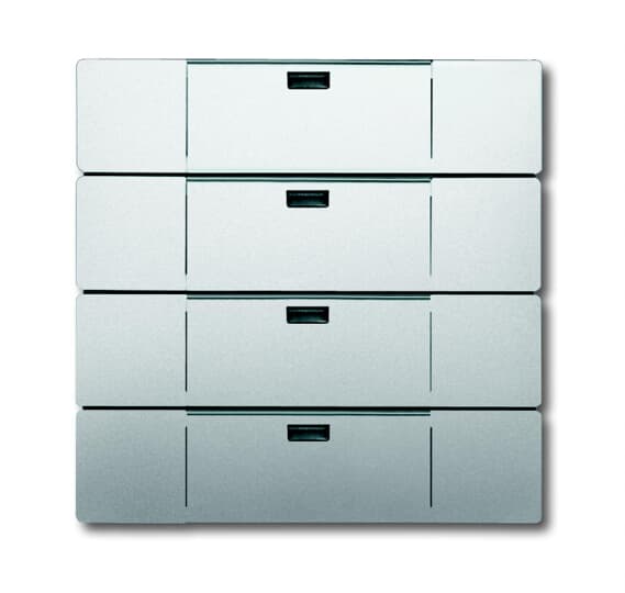Netzunabhängiger 4-fach Wandsender. Mit Beschriftungsfeld und Beschriftungsschild. Zum Schalten und Dimmen. Zur Jalousie- und zur Lichtszenensteuerung. Es können 4 Funkkanäle bedient oder bis zu 8 Lichtszenen aufgerufen werden. Für WaveLINE UP-Aktoren 6701-101, 6702, 6703, 6704 und 6705-101. Für LED-Anzeige WaveLINE 6730-xxx. Kompatibel zu WaveLINE Medienkonverter TP-RF 6770. Sendefrequenz: 868 MHz. Reichweite: ca. 100 m (Freifeld). Spannungsversorgung: Lithium-Knopfzelle Typ CR2032. Batterielebensdauer: typ. 5 Jahre, dadurch praktisch wartungsfrei. Automatische Überwachung der Batterielebensdauer. Inkl. Befestigungsplatte zur Montage auf glatten Wänden oder auf Schalterdosen. Oberfläche Kunststoff lackiert. Batterie im Lieferumfang enthalten. Passende Beschriftungssoftware unter www.BUSCH-JAEGER-Beschriftungstool.de.