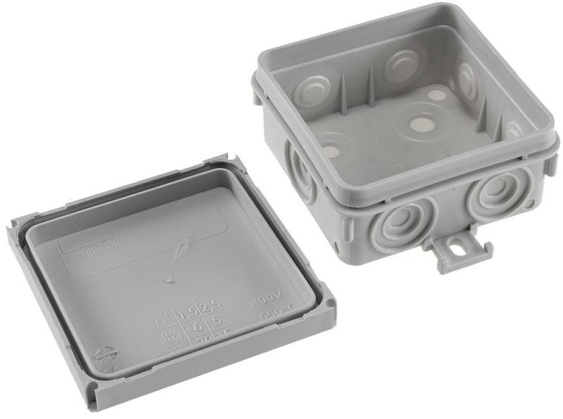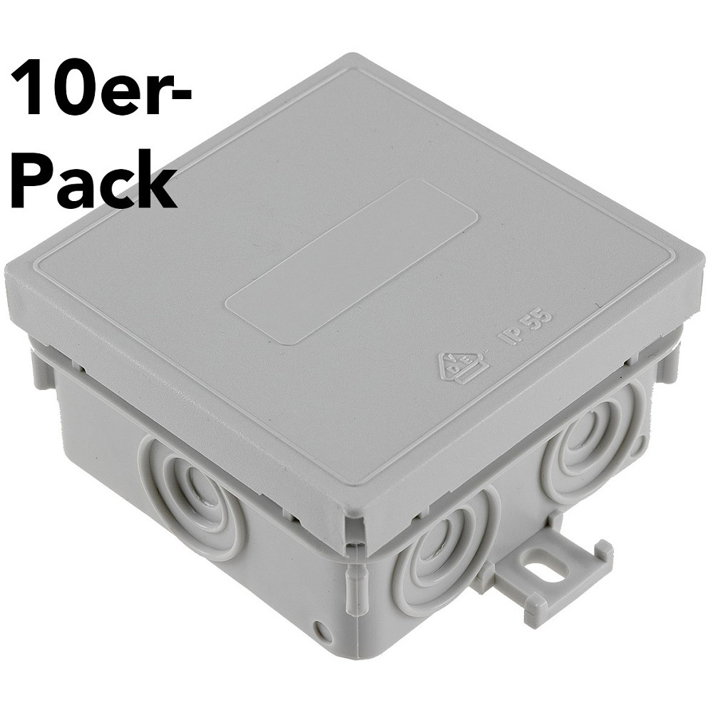 10er Pack N.V. PLASTIC COLOR Feuchtraum-Kabelabzweigkasten, 75x75x40mm, IP54, 7-fach, grau