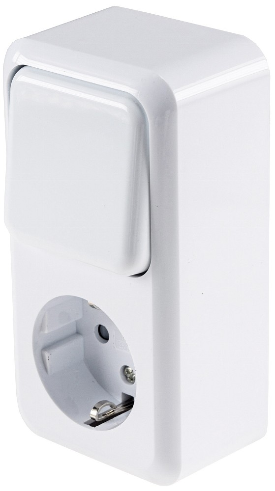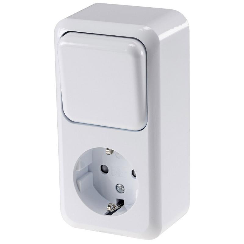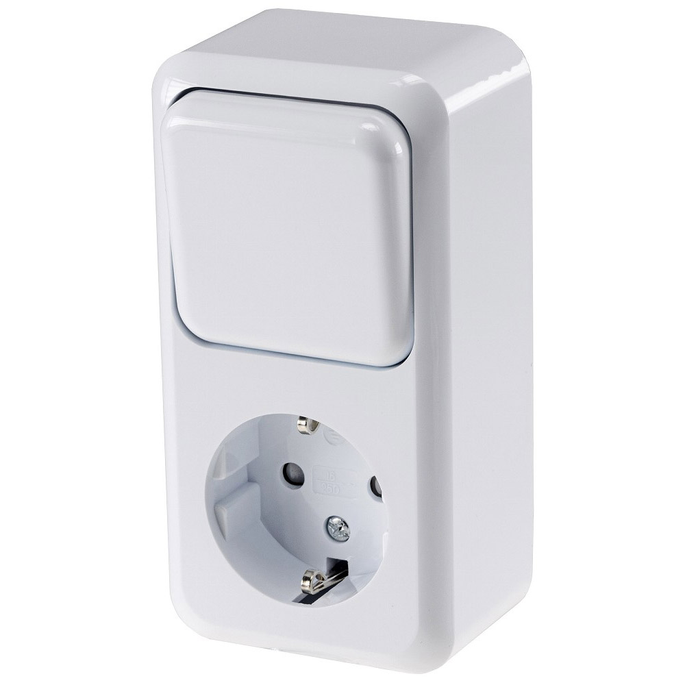 ChiliTec FASKO Kombi Steckdose Schalter, AP, Weiß 250V~, Aufputz, Schraubanschluss