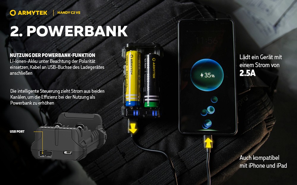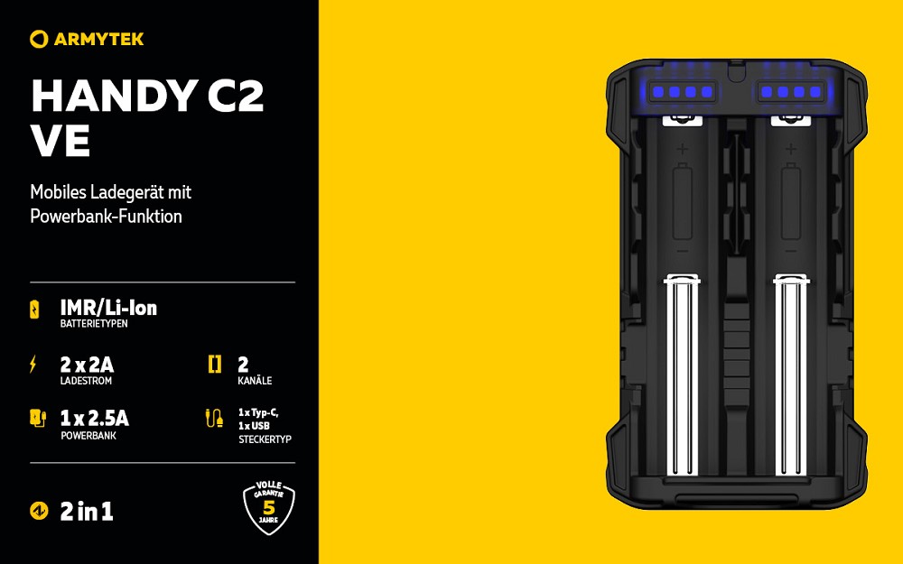 Armytek Handy C2 Vape Edition – Kompaktes Ladegerät mit Powerbank-Funktion