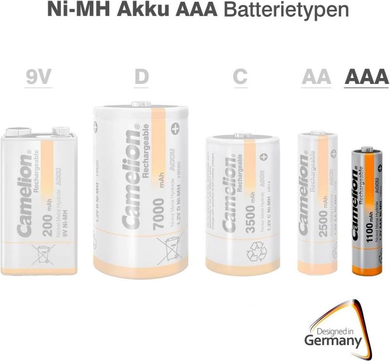 4er-Pack Micro-Akkus CAMELION Ni-MH, 1100mA Typ AAA, 1,2V