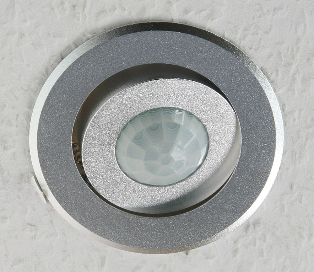 Dieser Bewegungsmelder kann dezent einfach in die Decke eingesetzt werden - und besticht durch seine edle Aluminium-Blende.