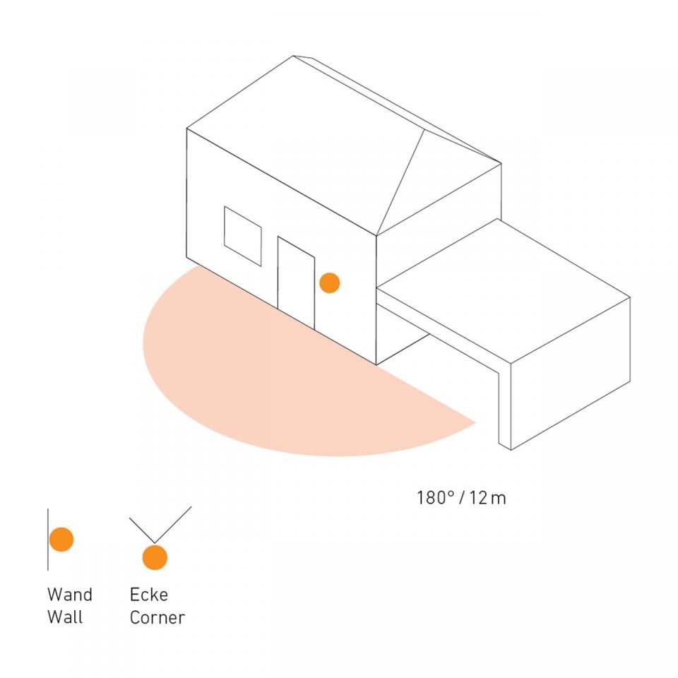 - Infrarot-Bewegungsmelder mit 180° Erfassungswinkel und bis zu 12 m Erfassungsreichweite