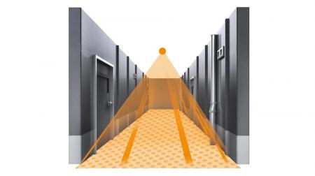 Gänge und lange Flure haben spezielle Anforderungen an die Leistung von Sensoren. Schmal aber lang muss das Erfassungsfeld des Sensors sein. Nur so lassen sich mit möglichst wenigen Sensoren, lange Abschnitte zielgerichtet abdecken. Der IS 345 ist der vielfach bewährte Spezialist für solche Anwendungen in Innenbereichen. Er verfügt über eine spezielle Gang- Erfassung und einen Öffnungswinkel von 45°. Damit überwacht er bis 23 x 6 Meter tangential.