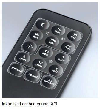 - KNX-Funktionen: Lichtausgang 2x, Präsenz-Ausgang, Helligkeitswert, Konstantlichtregelung, Grundlichtfunktion, Dämmerungsschalter, Nahfeld, Einzelpyroauswertung, Logikgatter
