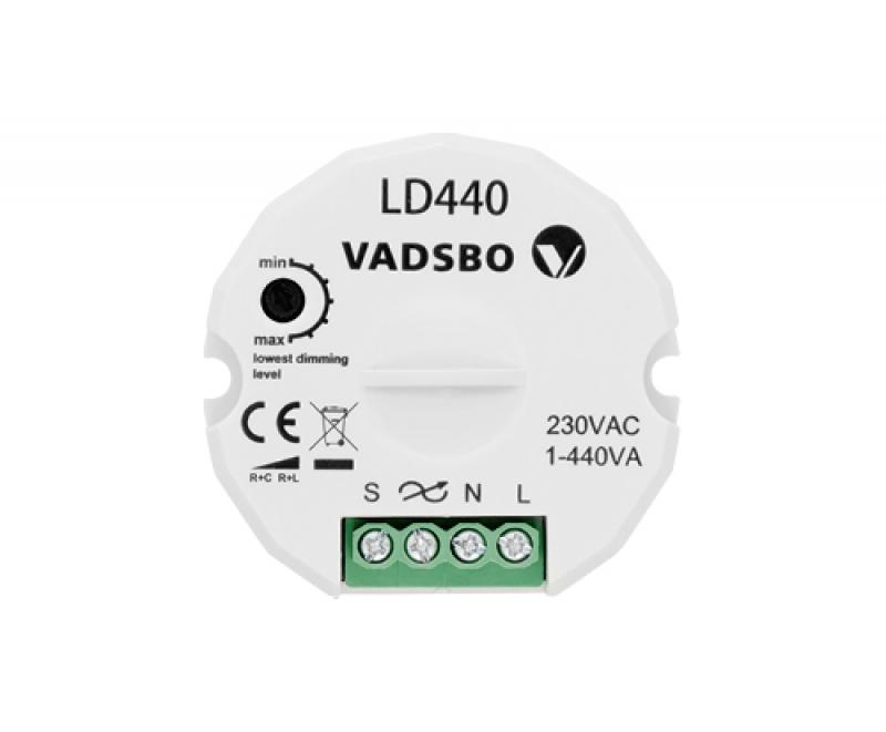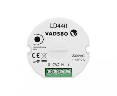 Das Tastdimmmodul LD440 besitzt einen Dimmbereich von 0-100%. Die angeschlossene Maximallast darf 440W nicht überschreiten. Des Weiteren ist eine Wechselschaltung möglich und die minimale Dimmstufe kann eingestellt werden.