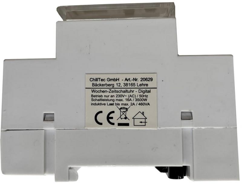 ChiliTec digitale Wochen-Zeitschaltuhr für Schalttafel-Einbau, 230V, max. 3500W