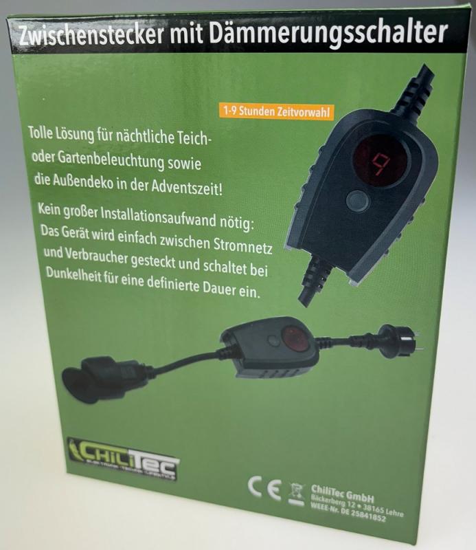 ChiliTec Zwischenstecker mit Dämmerungsschalter und Zeitvorwahl (1- 9 Std.) über Display